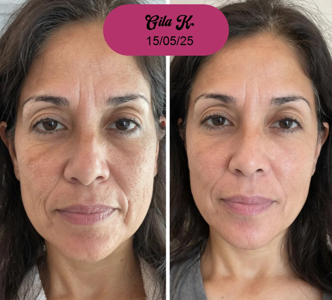 מראה מוצק יותר סביב השפתיים ואזור הנזולביאלי — סידן תומך ב"פיגום" האלסטי של העור.