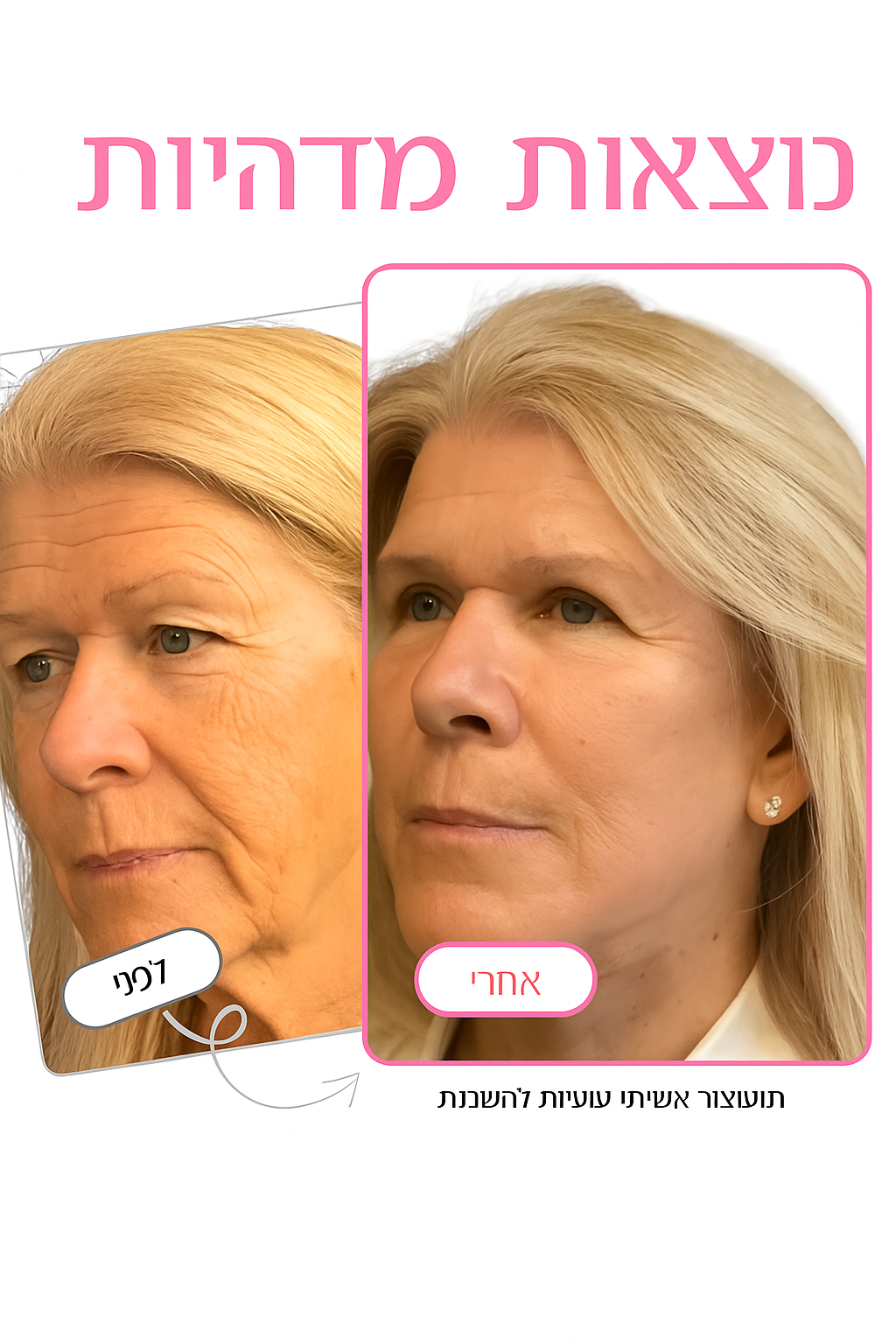 רוב המשתמשים מבחינים בעור רך וחלק יותר כבר בשבוע הראשון. בשימוש קבוע, קמטים עדינים ושקעים נראים מופחתים באופן ניכר תוך 2-3 שבועות בלבד.
